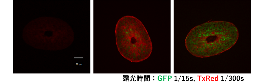 現代の多様なヘアスタイル志向に伴い、多くの人々がヘアカラーや熱処理などによる毛髪内部のダメージに悩まされている。そこで同社は、FS-SR101染色という手法を用いて毛髪内部、特にコルテックス領域の損傷を可視化することに取り組んだ。健康な毛髪では緑色(FS)と赤色(SR)に染まるが、ダメージ毛ではこれらの蛍光が消失する。従来のトリートメントを用いてもこの蛍光の回復は見られず、通常のヘアケア製品ではコルテックス領域の改善に至っていないことが示唆された。