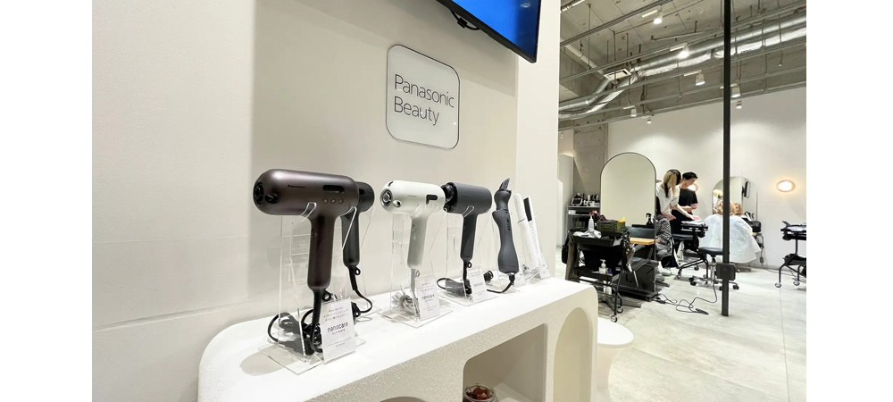 この取り組みでは、最新のドライヤー「ナノケア」を全席に導入し、さらにヘアアイロンなどの美容家電を展示。来店客が自由に製品を体験できる“体験型サロン”として、新しい美容空間を提供している。