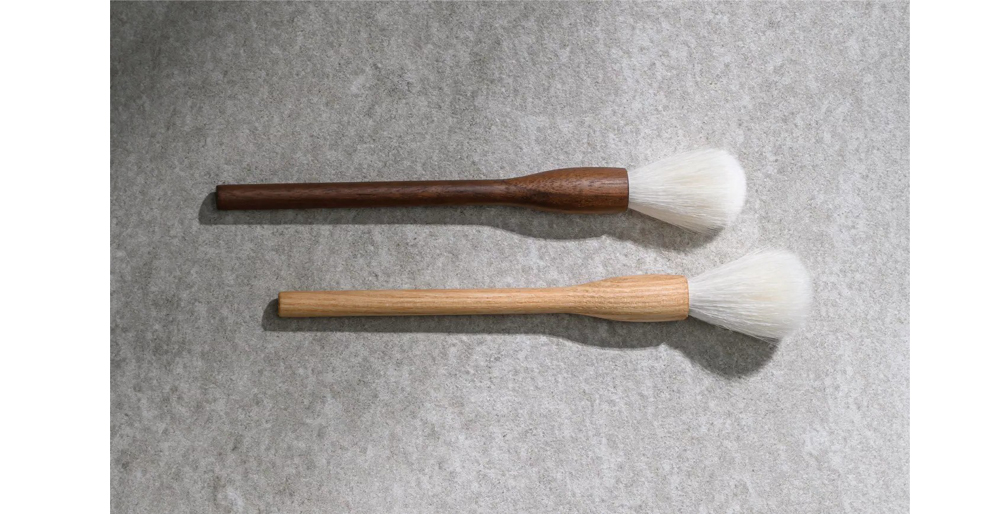今回登場した2種のブラシは、肌あたりのやわらかさに定評のあるアク抜き済み山羊毛を採用し、ペンシル型ハンドルで扱いやすい仕様となっている。適度な長さを持たせることで技術動作が安定し、皮脂が気になるTゾーンや小鼻・耳まわりなど、細かな部分のケアにも最適だ。