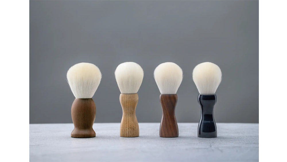 今回登場した4種は、いずれもアク抜き済みの山羊毛を採用し、毛量をたっぷり確保することで濃密な泡立ちを可能にした。毛の長さも操作性を考慮して調整されており、技術者がストレスなく扱えるつくりとなっている。