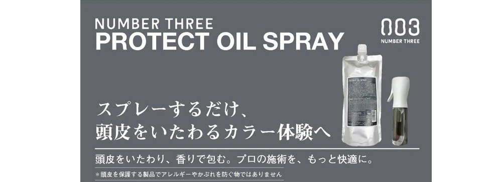 一方、カラー施術の快適性を高める「ナンバースリー プロテクトオイルスプレー」は、頭皮の違和感を緩和しながら施術を行える新設計のオイルスプレーだ。頭皮を保護する機能を持ち、アンケート(モニター会員・n=152、以下同)では使用者全員が刺激の改善を実感したと回答している。