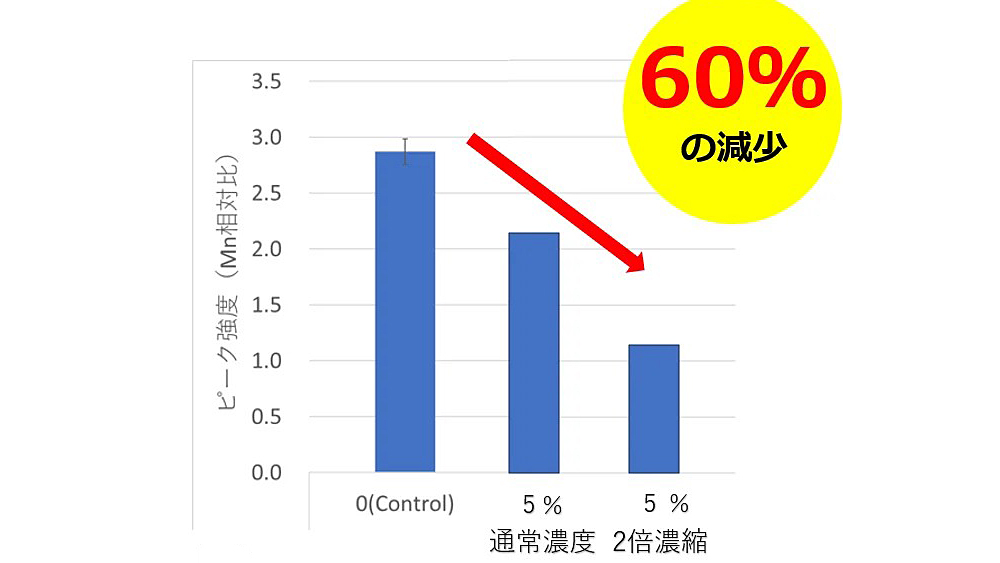 検証試験では、2倍濃縮の糖鎖栄養素抽出液を配合したヘアカラー剤を用いたところ、全体の5%配合で炎症原因物質が約6割減少することが確認された。さらに、実際のサロン現場でのモニター調査も実施。SNSを通じて募集した160件の応募のうち59件から回答が得られ、95%のサロンが「染色に影響はない」と回答し、8割以上のサロンで炎症軽減効果が確認されたという。