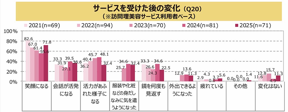 「笑顔になる」が7割 訪問理美容がもたらす変化