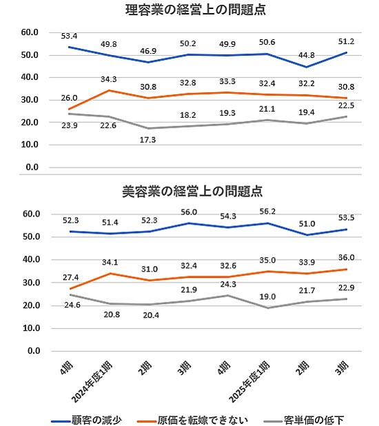 客単価低下と顧客減少が拡大 理美容業の経営環境さらに悪化 【経営上の問題点】(2025年10~12月期)