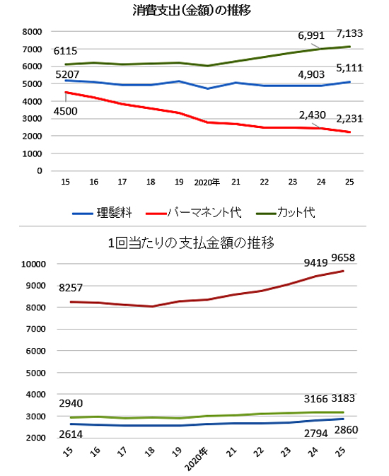 2025年理美容支出で読む理美容消費 伸びる「他の理美容代」と縮むパーマ需要